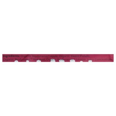 INGREDIENTS: Organic Biodynamic Apple, Organic Sweet Potato, Organic Biodynamic Red Beet, Organic Biodynamic Lemon Juice Concentrate.