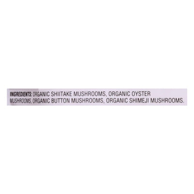 INGREDIENTS: Organic Shiitake Mushrooms, Organic Oyster Mushrooms, Organic Button Mushrooms, Organic Shimeji Mushrooms.