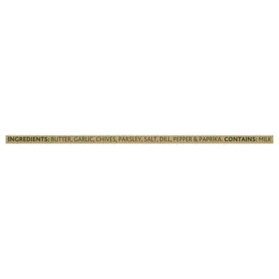 INGREDIENTS: Butter, Garlic, Chives, Parsley, Salt, Dill, Pepper & Paprika.