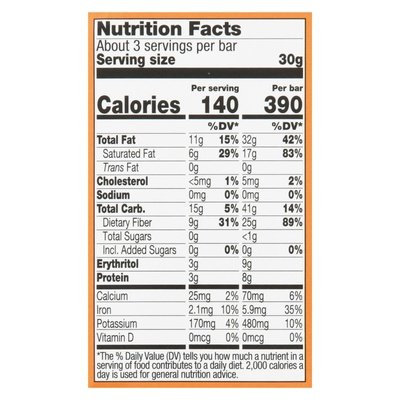 INGREDIENTS: Unsweetened Chocolate, Dextrin (Non-GMO), Dry Roasted Almonds, Erythritol (Non-GMO), Cocoa Butter, Milk Fat (rBST Free), Chicory Root Fiber, Sunflower Lecithin, Stevia Extract, Vanilla Extract.