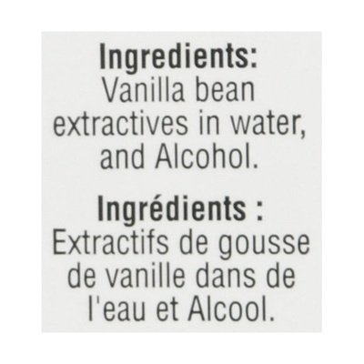 INGREDIENTS: Pure Vanilla Extract [Water, Alcohol (35%), Extractive of Madagascar Bourbon Vanilla Beans], Glucose Syrup.